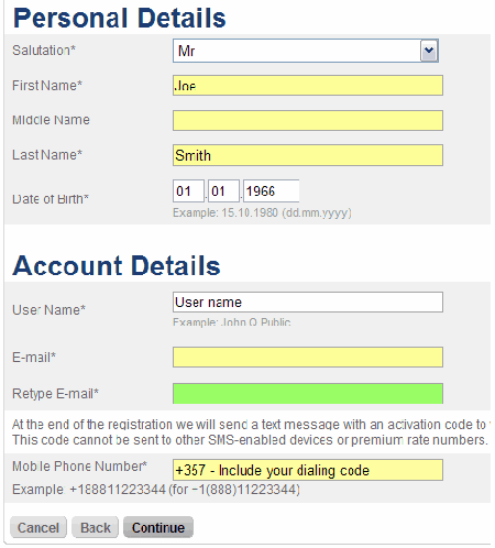 Ihre internationale Vorwahl wird automatisch eingetragen, so dass Sie lediglich Ihre Handyvorwahl (Bitte die erste 0 weglassen) und Ihre Rufnummer eingeben müssen. Zum Beispiel wenn Ihre Nummer 01628/543533 ist, dann tragen Sie 1628543533 ein.